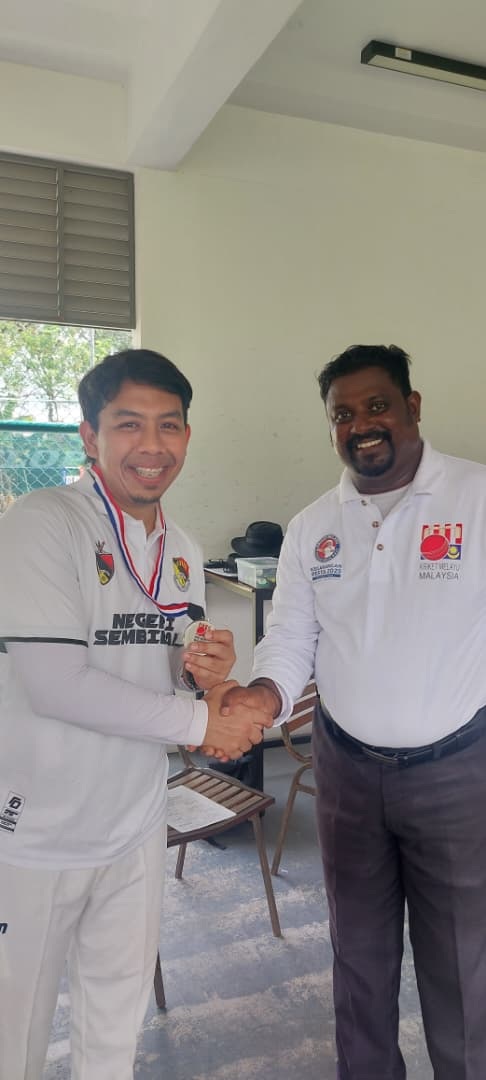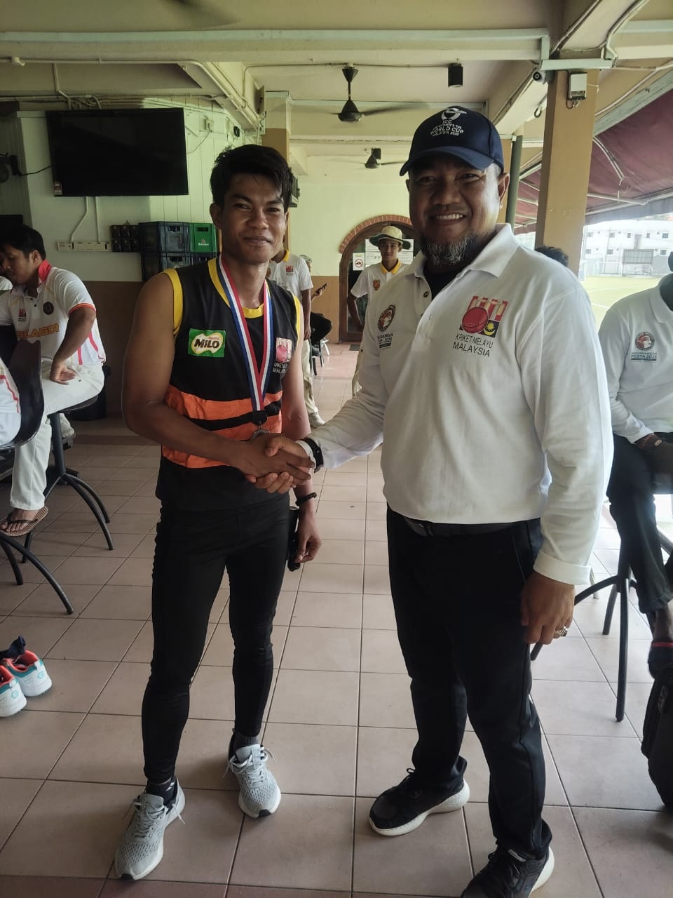 AZMAN TAJRI gembira menerima pingat pemain terbaik pertemuan Negeri Sembilan-Perlis di Kiara Oval, 12 Ogos 2025.