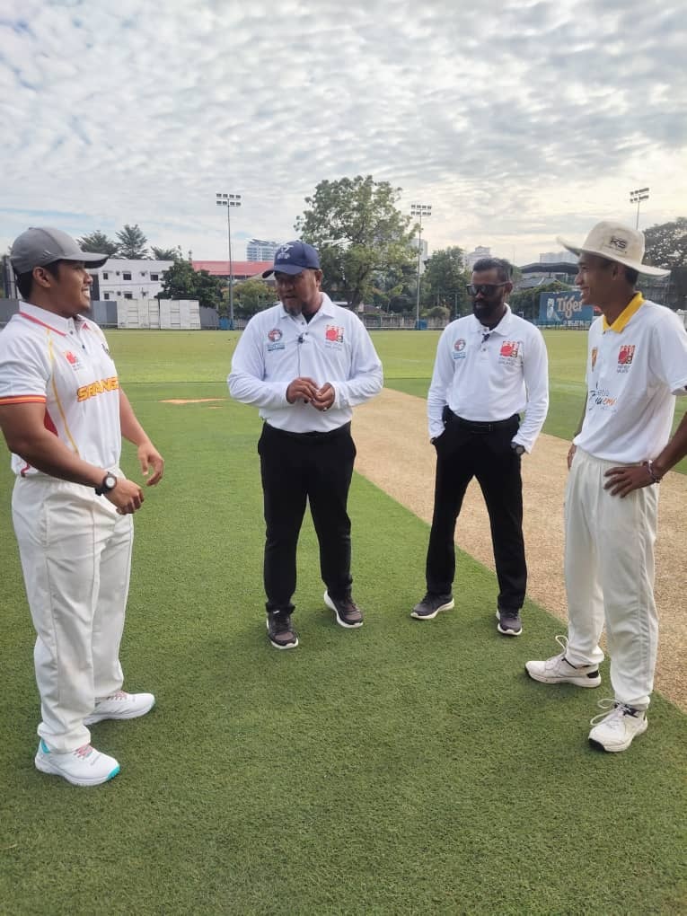 KUALA LUMPUR - Dua pasukan pilihan, Negeri Sembilan dan Sabah melaksanakan penguasaan hari pembukaan Kejohanan Kriket Antara Negeri bagi merebut Perisai Raja-Raja, 12 Ogos 2025/